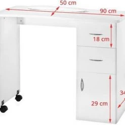 MEGA BEAUTY SHOP® Manicuretafel Met Afzuiging – 118,5 Cm – Kast Rechts – Inclusief Displaywand – Wit