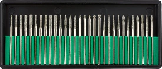 - Accessoires: Inclusief uitgebreide manicure accessoires: 6x standaard schuurdoppen / 10x zwarte vijlen / 30x diamant freeskop / 2x schuurblokken / 106 schuurhulzen.