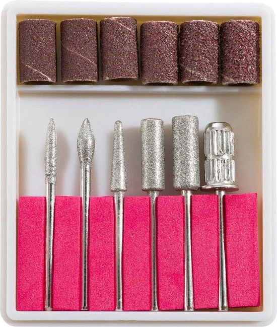 Met deze bitset hebt u alles bij de hand voor manicure, pedicure en het aanbrengen van kunstnagels. De set bestaat uit 6 kwalitatief hoogwaardige diamantfrezen. Verschillende diktes en vormen late u toe zeer precies te werken met gel- of acrylnagels.