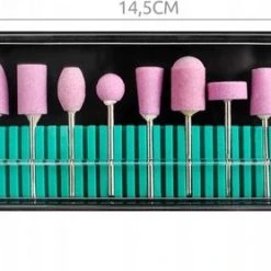 De opzetstukken vari?ren in lengte of vorm. Het schuuroppervlak is van metaal. Elk opzetstuk moet aan de slijpstift worden bevestigd voordat de molen op het lichtnet kan worden aangesloten. Een fijn opzetstuk is geschikt voor het naslijpen van een natuurlijke nagel. Gebruik op moeilijk bereikbare plaatsen een zacht, kegelvormig opzetstuk. Extensies kunnen ook worden gebruikt om onregelmatigheden tijdens het modelleren terug te laten groeien. Voor het verwijderen van gelnagels is een grofkorrelige schuurroller geschikt. Als u een branderig gevoel voelt tijdens het malen, ga dan verder met intermitterend malen. Bij het vormgeven van nagels is het noodzakelijk om niet alleen het oppervlak opnieuw te slijpen, maar ook de randen van de nagels, evenals de binnenkant van de gemodelleerde punt. Een breed opzetstuk is ideaal voor het eindschuren, waarmee je een professioneel resultaat behaalt.