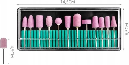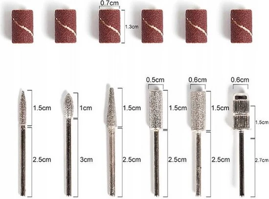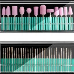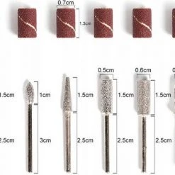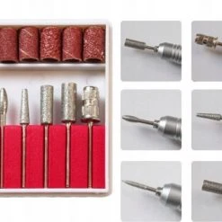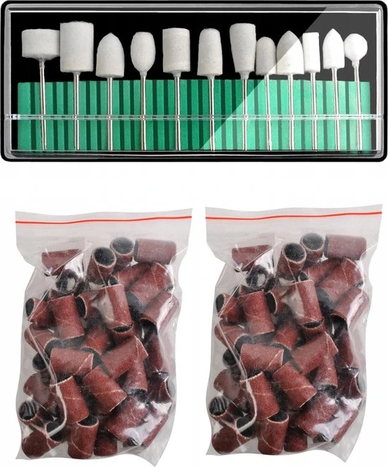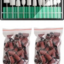 Accessoires voor nagelslijper is geschikt voor professioneel en thuisgebruik, voor manicure en pedicure. Kan gebruikt worden op natuurlijke, gel- of acrylnagels. De set bevat hulpstukken, slijpstenen, polijstmachines. Bespaart tijd bij het schuren en slijpen van nagels.
