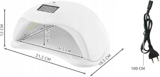 De nieuwste Generatie LED-lamp 48W zorgt voor snel uitgeharde nagels in de vorm van gel of andere coatings. De LED technologie maakt de lamp betrouwbaar, snel en hard de gehele nagel gelijkmatig uit. De lamp bestaat uit twee delen: een koepel en een standaard, die we overlappend met elkaar verbinden. Aan de voorzijde bevindt zich een display met een timer en knoppen voor het selecteren van de uithardingsvariant, namelijk 10s, 30s, 60s en 99s.