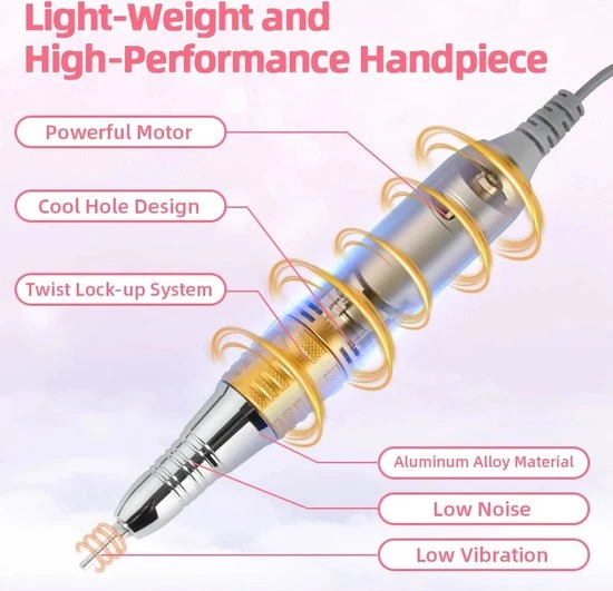 CACCIO® NAILS NagelFrees is een van de nieuwst ontwikkelde nagelvrezen op de markt. Hierdoor is eigenlijk over alle wensen nagedacht. Zo heeft de frees een motor die 35000RPM kan genereren, is het volledig touchpad bestuurbaar, zit er een reverse Option op en zitten de hulpstukken magnetisch vast op het apparaat zodat je deze gemakkelijk kunt pakken tijdens het werk! De ideale oplossing voor iedereen die zijn nagels professioneel aangepakt wilt hebben dus.
