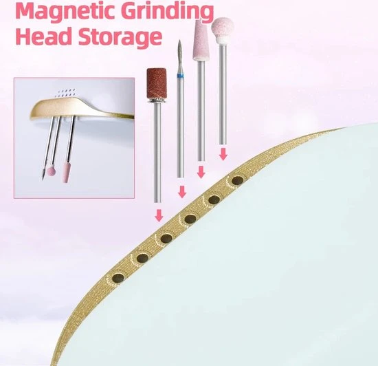 Als je bezig bent met iemand zijn nagels, dan wil je natuurlijk niet afgeleid zijn. Volle focus is uitermate belangrijk, door de speciale magnetische technologie kan jij je hulpstukken en vrezen gemakkelijk in het apparaat stoppen en zijn ze altijd binnen handbereik!