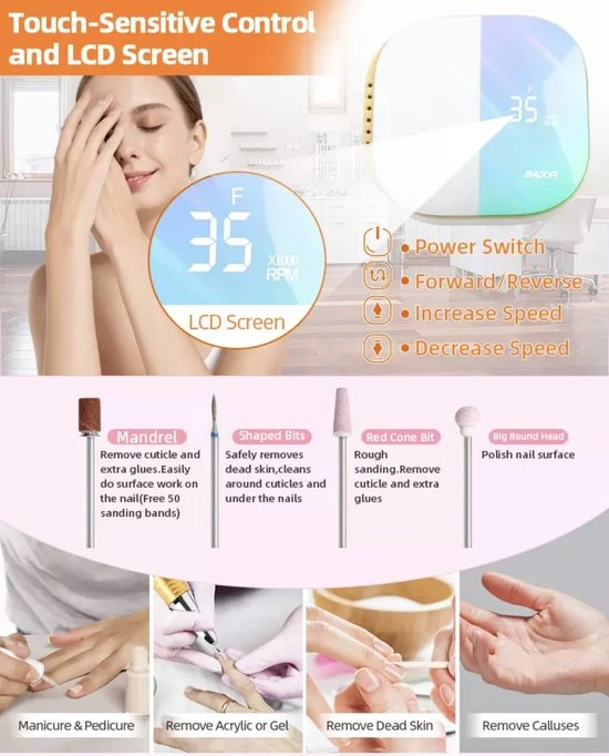 De CACCIO® NAILS nagelfrees is uitgerust met een touchpad, hierdoor kan je gemakkelijk met 1 vinger de snelheid aanpassen, AAN/UIT zetten, of de draairichting aanpassen. Zo zorg jij ervoor dat je de volle focus kunt houden op waar jij mee bezig bent.