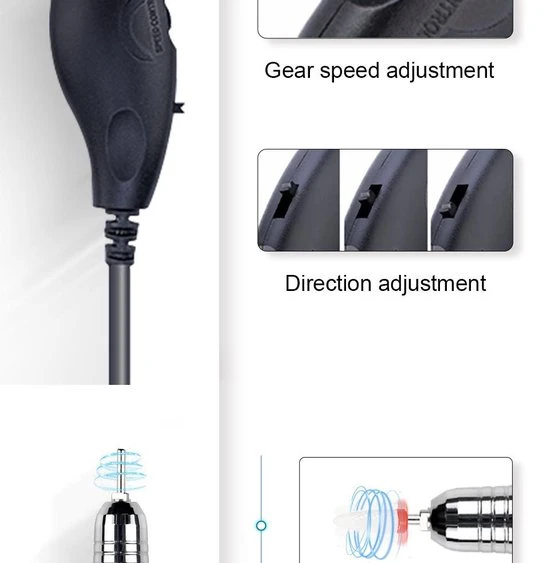 De meest indrukwekkende feature van deze frees is wel het vermogen. Met een paar simpele drukken op de knop kan d frees 40000 RPM genereren. De meeste hobby frezen kunnen rond de 5000RPM aan. Dit betekent niet alleen dat de klus velen malen sneller af is, maar dat het eind resultaat ook velen malen beter zal zijn!