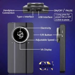 CACCIO NAILS NagelFrees is een van de nieuwst ontwikkelde nagelvrezen op de markt. Hierdoor is eigenlijk over alle wensen nagedacht. Zo heeft de frees een motor die 35000RPM kan genereren, is het volledig draai bestuurbaar, zit er een reverse Option op. De ideale oplossing voor iedereen die zijn nagels professioneel aangepakt wilt hebben dus.