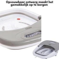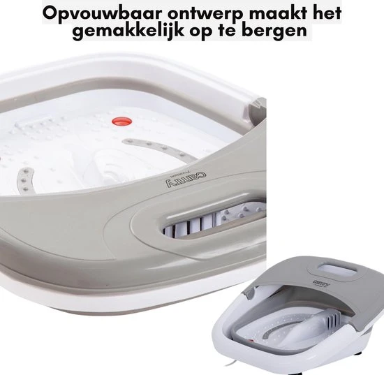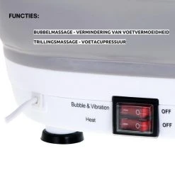 Het multifunctioneel voetmassageapparaat met draagbeugel wordt gebruikt voor ontspanning en gezondheidsdoeleinden. Het maakt verschillende soorten massage mogelijk: bubbel, vibrerend, droog en warmte. Door de temperatuur van het water te handhaven, kan een comfortabele massage worden gegeven gedurende de tijd dat het water normaal zou zijn afgekoeld. Het massageapparaat heeft een positief effect op de bloedsomloop van de voeten, en bovendien worden de zenuwen op de voetzolen ge?indigd, wat een weldadig effect heeft op het hele lichaam. Het geeft je ook de kans om te ontspannen na een dag vol spanning of na het lopen in oncomfortabel schoeisel.