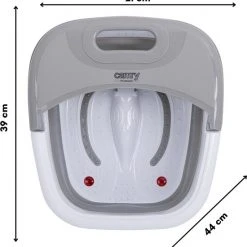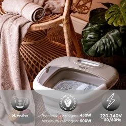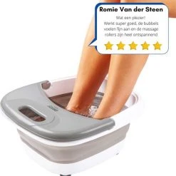 Verder kies je tussen een bubbel-, vibratie- of droge massage. Met de pedicure opzetstukken kan je dan zelf nog eelt verwijderen en je voeten borstelen. Door het spatscherm blijft je vloer droog. Het toestel heeft een afneembare aromafilter, antislipvoetjes en een handvat om hem te verplaatsen.