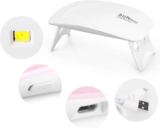 Voor iedereen die zelf zijn/haar angels lakt is deze Mini LED nagellamp en echt must have. Deze is te gebruiken voor zowel gelnagels als gellak nagels en voor het drogen en verharden van nagels. Vanwege zijn kleine formaat is deze ook gemakkelijk mee te nemen in je tas bijvoorbeeld (10×3,5 cm afmeting) en overal via USB aan te sluiten. De lamp gaat direct na zodra deze aangesloten is.