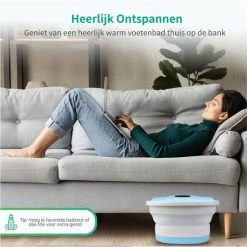 Opvouwbaar voetenbad – Een groot voordeel is dat het voetenbad opvouwbaar is. Het voetenbad van Dreaver is eenvoudig opvouwbaar en past onder iedere bank ! Zo kun je na een heerlijk voetenbad deze binnen enkele seconden opvouwen en opbergen zonder dat het veel ruimte in beslag neemt.