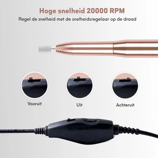 Dankzij de verstelbaarheid en de verschillende vijlkopjes, kun jij elke nagel nauwkeurig aanpakken. Op deze manier kan elke nagel tot in de nopjes gevijld worden en geniet je van het beste resultaat!
