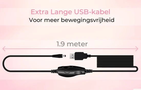 De bijgeleverde USB-kabel heeft een lengte van maar liefst 1.9 meter. Dat betekent dat jij je geen zorgen hoeft te maken over de lengte van de stroomkabel. Je kan gewoon comfortabel op je favoriete plekje je huid en nagels verzorgen.