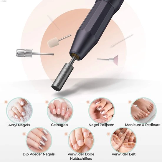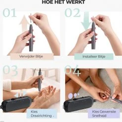 Door het compacte design kan de nagelfrees bovendien gemakkelijk worden gebruikt, opgeborgen en meegenomen in je handtas.