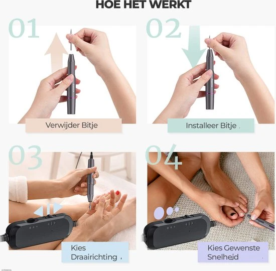 De FOOCCA® Manicure- en Pedicureset, de krachtige en efficiënte nagelfrees set voor zowel beginners als professionals.