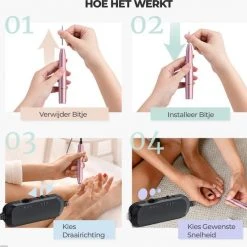 Door het compacte design kan de nagelfrees bovendien gemakkelijk worden gebruikt, opgeborgen en meegenomen in je handtas.