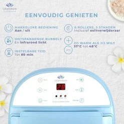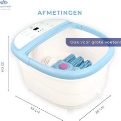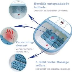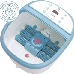 Het Lifeproducts Voetbad met massage ontspant vermoeide voeten en verbeterd de bloedsomloop! Verwen je voeten na een lange dag met een heerlijk voetbadje en kom weer helemaal tot rust. Verander het voetbad zwembad in een pedicure behandeling door voetbadzout (epsomzout) of Etherische olie toe te voegen aan het water. Zo kunt u heerlijk genieten van een therapeutische en ontspannende voetspa. Het voetbad beschikt over een automatisch draaiende eeltverwijdersteen zodat u na het voetenbadje ook heerlijk gladde voeten krijgt. Het voetenbad verwarmt het water tot wel 48°C en beschikt over 6 automatische massage rollers die u voeten masseren. Het voetbad beschikt ook over een fijne bubbelstraalfunctie zodat u extra kunt genieten. De massage van het voetbad ontspant de spieren in de voet en kan symptomen van plantar fasciitis (hielspoor) verzachten. Het voetenbadje is voorzien van een handige handvat waardoor het makkelijk te verplaatsen is. Daarbij heeft de spa een waterafvoer an de achterkant waarmee u eenvoudig het voetbad leeg kunt laten lopen.