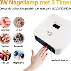 De nageldroger start en stopt automatisch dankzij infrarood bewegingssensoren. Hand erin, licht aan. Hand eruit, licht uit. Hierdoor hoef je niet meer op knopjes te drukken met natte nagels. De nageldroger heeft standaard 3 automatische timers (10s,30s,60s). Wil je andere timers instellen of opties combineren, dan kun je jouw persoonlijke instellingen opslaan met de handige memory functie. Op het heldere LCD display kun je precies zien hoeveel seconden op de timer over zijn die toont de timer en laat zien hoeveel seconden zijn.