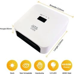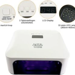 De LoveCrazy nageldroger heeft 33 sterke 60 Watt LED UV-lampen. In 30-60 seconden zijn de nagels van je hand of voet droog en uitgehard. Basecoats, topcoats, gelpolish of builder gels, je hebt altijd perfecte polymerisatie dankzij de dubbele golflengte technologie. Bewegingssensoren zetten de nageldroger automatisch aan en uit, dus je verpest nooit meer natte nagels aan knopjes! Kies uit handige opties zoals een low-heat functie, 3 timers (10s,30s,60s). De perfecte nageldroger voor thuis of in de salon!
