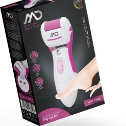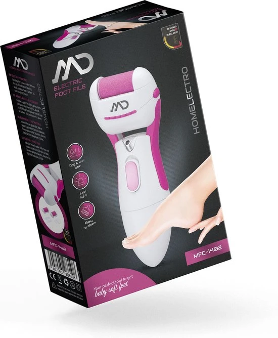 Voor perfect gladde en zachte voeten zonder moeite gebruik je de Elektronische Voetvijl. Deze elektronische voetvijl is ontwikkeld om thuis een professioneel resultaat te bereiken. De ultrafijne synthetische diamantkristallen scrubben je huid op natuurlijke wijze. Door rollers met microkorrels worden eelt en harde huid in een handomdraai verwijderd en zijn je voeten weer zichtbaar en voelbaar glad.