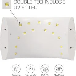 De Meanail Icone is ontworpen met de dubbele technologie UV/LED. Een zeer complete techniek waarbij 2 de golflengtes 365 + 405nm voor een snelle uitharding zorgen. U kunt alle gel nagellakken, gellak en gelpolish in NO TIME uitharden. De Icone lamp hardt de nagellakken in 30s in tegenstelling tot 2min bij een klassieke UV-lamp.