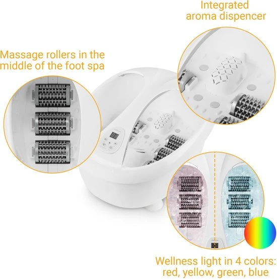 - Massagerollen in het midden van het voetenbad voor massage aan de onderkant van de voeten