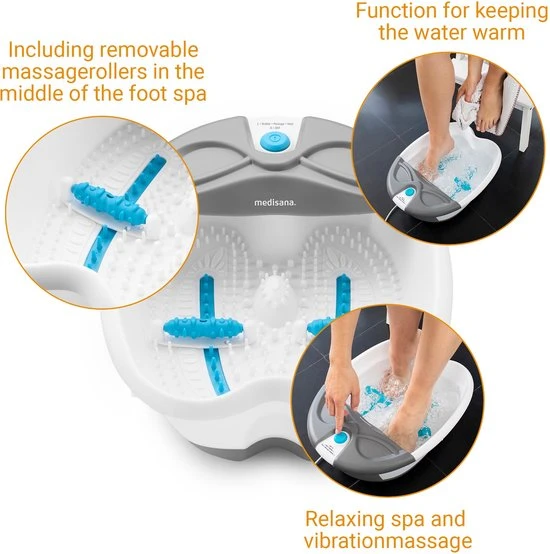 - Inclusief verwijderbare massagerollers in het midden van het voetenbad om de voetzolen te masseren