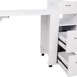 Deze manicuretafel is perfect voor een kleine ruimte. De poten en tafelblad van deze tafel kunnen ingeklapt worden, waardoor de tafel in een gewone ladekast veranderd.