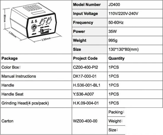 Nagelfrees JD400 zwart originele MBS? + 100 stuks schuurrolletjes!