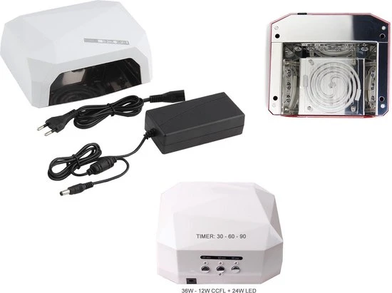 Zowel Led als UV gels kunnen in deze CCFL Lamp uitharden met tijden die vari?ren van 30 tot 90 seconden.