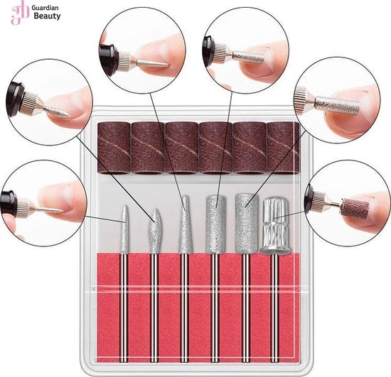 De elektrische nagelvijl heeft een handstuk met een snelheid van 20,000 toeren per minuut (tpm). Het apparaat wordt geleverd met 6 nagelfrees bitjes en 6 schuurrolletjes zodat je meteen aan de slag kunt!