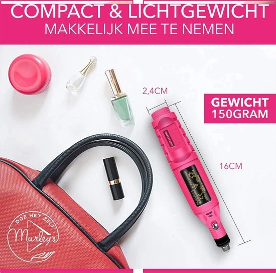 Met Murley?s elektrische nagelfrees kan je je nagels zelf met gemak vanuit thuis doen. Deze betaalbare nagelvijl is alles wat je nodig hebt voor zowel natuurlijke als kunstmatige nagels. De ideale manicure en pedicure set voor thuis. Bespaar tijd en geld met deze doe-het-zelf nagelfrees!