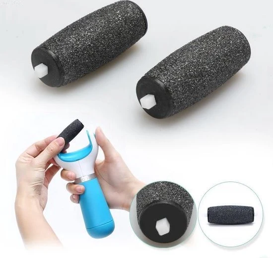 Twee verwisselbare roller voor de elektronische voetvijl van Scholl Velvet Smooth. Deze rollers bevatten grove microkorrels en zijn bewerkt met ultrafijne synthetische diamantkristallen, voor het beste resultaat.