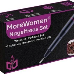 Met de MoreWomen® Nagelfrees haal je de nagelstudio in huis. De elektrische nagelvijl is compact in formaat, maar uitgebreid in functionaliteit. Je kunt er thuis namelijk professioneel mee aan de slag, door de 11 bitjes. Dit maakt het dat het ideaal is voor niet alleen het vijlen, maar voor alles, zoals ook het polijsten en het exfoliëren van je nagels. De nagelfrees kan zowel vooruit als achteruit draaien, zodat het voor rechtshandige en linkshandige is te gebruiken.