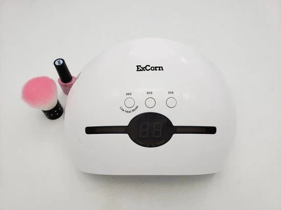 De nieuwe ExCorn® /nagellamp heeft 48Watt LED UV-lampen. In 30-60-90 seconden zijn de nagels van je hand of voet droog en uitgehard, 3x sneller dan gemiddeld. Basecoats, topcoats, gelpolish of builder gels, je hebt altijd perfecte polymerisatie dankzij de dubbele golflengte technologie. Bewegingssensoren zetten de nageldroger automatisch aan en uit, dus je verpest nooit meer natte nagels aan knopjes! Kies uit handige opties zoals een low-heat functie, 3 timers (30s,60s,90s). De perfecte nageldroger voor thuis of in de salon!