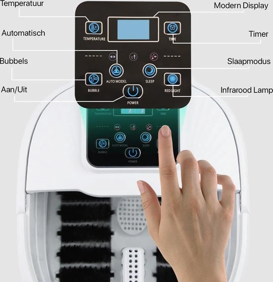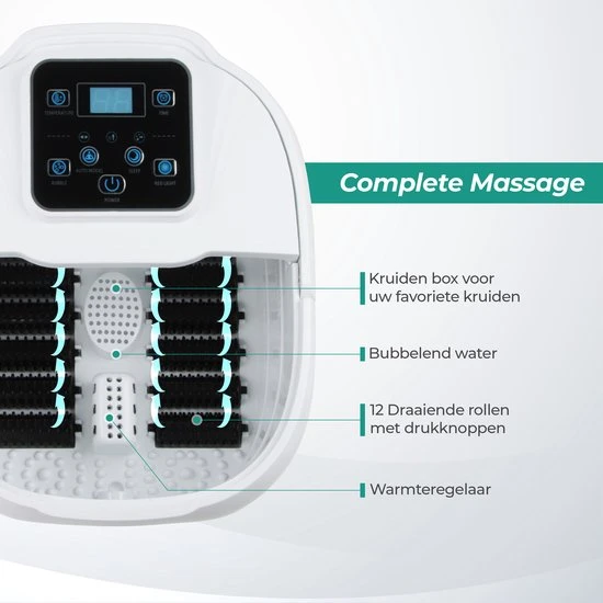 Met maar liefst 12 (!) massagerollers, zuurstof bubbels en infrarood licht krijgen jouw voeten met dit heerlijke massagebad precies wat ze nodig hebben. Zo worden de voetspieren volledig los gemasseerd, ervaar je een boost van nieuwe energie en wordt de bloedcirculatie gestimuleerd.