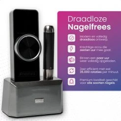 Dankzij de krachtige accu kan de nagelfrees tot 16 uur lang draadloos werken. Hierdoor kan je het precies gebruiken hoe en waar je wilt. De nagelfrees is vervolgens weer eenvoudig op te laden in het meegeleverde luxe oplaadstation. Hierin heb je ook een plaats om de nagelfrees te bewaren. waardoor deze altijd een vaste opslagplaats heeft. Een fijn voordeel: op het LCD-display is af te lezen wat de status van de batterij en het aantal toeren is.