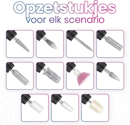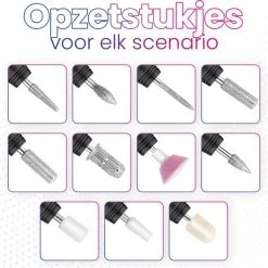 Deze nagelfrees wordt geleverd met alle onderdelen en toebehoren die je nodig zal hebben om jezelf compleet te verzorgen. In totaal worden elf professionele bitjes meegeleverd, die tientallen jaren mee zullen gaan en perfect zijn voor iedere situatie. Daarnaast worden een professioneel nagelschaartje, een schoonmaakborsteltje en een luxe houten vijl meegeleverd om een perfecte verzorging te kunnen bieden.