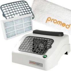 Professionele Promed nagel stofafzuiging / tafelafzuiger met uitneembare en reserve filter. Voor professionele nagelstudio of nagelstyliste in WIT. Nu met Gratis Promed handdoek!