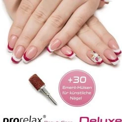De Prorelax? manicure-/pedicureset Deluxe overtuigt met 15 verschillende hoogwaardige opzetstukken van saffier en vilt en het gebruikelijke ergonomische design van Prorelax?. De stille en draadloze toepassing, het krachtige LED-licht en aluminium koffer maken deze professionele set bijzonder geschikt voor nagelverzorging onderweg of op reis. Met PREMIUM heb je altijd en overal mooie handen en voeten – verzorgd en glanzend!