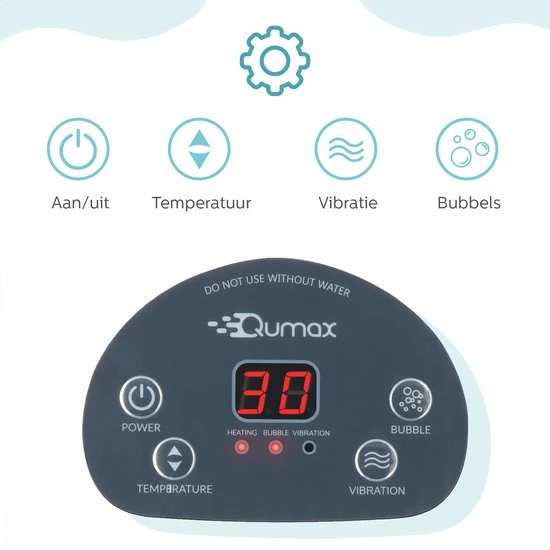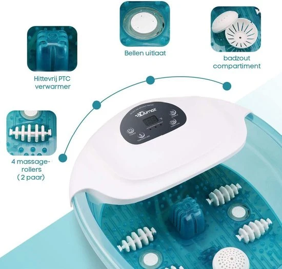 Verzorg je voeten en kom heerlijk tot rust met het verwarmde voetenbad van Qumax. Het luxe voetenbad bubbelt, vibreert en is voorzien van massagerollers voor een ultiem relaxmoment. Via het lcd-scherm kun je alle functies eenvoudig en snel instellen, waarna je kan genieten van een rustgevend en stressverminderend voetenbad.