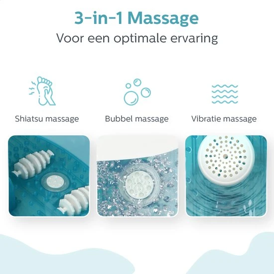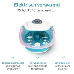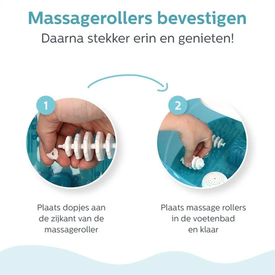 Het voetenbad is voorzien van 4 massagerollers waar je de voeten overheen kan rollen. Hierdoor zullen de voeten diep worden gemasseerd waardoor pijnpunten worden verlicht en de voeten uitgerust zullen aanvoelen. De massagerollers kunnen eenvoudig uit het voetenbad worden verwijderd wanneer er geen behoefte aan is.