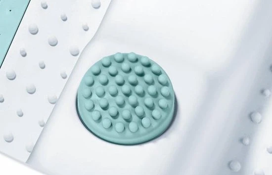 Het massageopzetstuk in het midden zorgt voor een aangename massage van de voeten en stimuleert de doorbloeding. Het opzetstuk kan voor de reiniging worden verwijderd. Door een bepaald punt op de zool van de voet te masseren, kunnen bepaalde organen van het lichaam worden be?nvloed. Het wordt echter aangeraden om v??r de puntreflexzonemassage eerst informatie in te winnen door de juiste literatuur te lezen of u door uw arts te laten informeren. Op die manier kunt u het gewenste resultaat bereiken.