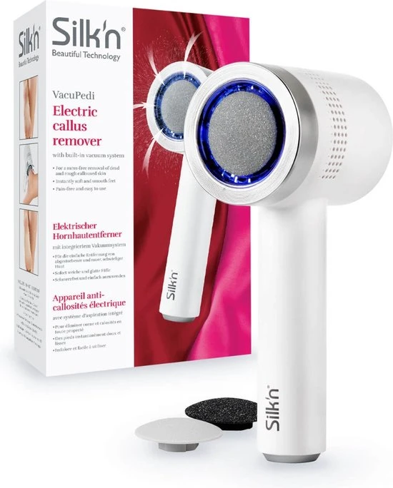 Met Silk?n VacuPedi krijgt u in enkele seconden mooi verzorgde en zachte voeten. Deze slimme elektrische eeltverwijderaar werkt met roterende slijpschijven en een ingebouwd vacu?msysteem. Eelt verwijderen zonder gedoe en ongemak, en nog belangrijker, zonder rommel!