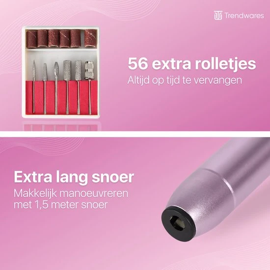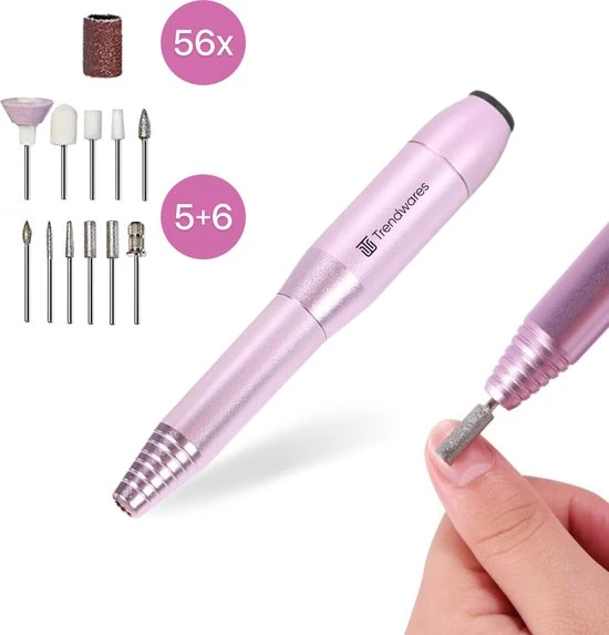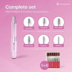 Trendwares Elektrische Nagelvijl – Nagelfrees met 11 opzetstukken en 56 schuurrollen – Nail Polisher voor Manicure en Pedicure