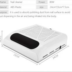 Deze NAIL DUST COLLECTOR is speciaal ontworpen en ervoor gemaakt om het behoud van uw gezondheid bij het werk te ondersteunen. Het apparaat is speciaal ontwikkeld als tafelafzuiging.
