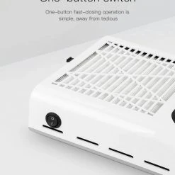 De Nail Dust Collector wordt bedient met een schakelaar. Het materiaal kan gemakkelijk gereinigd worden.