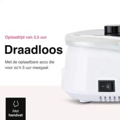 De oplaadbare accu (2500MaH) zorgt ervoor dat je de elektrische nagelvijl draadloos kunt gebruiken. De oplaadtijd is 2,5 uur en je kunt hem dan zo?n 5 uur gebruiken. Hierdoor zit jij niet halverwege met onafgemaakte nagels.
