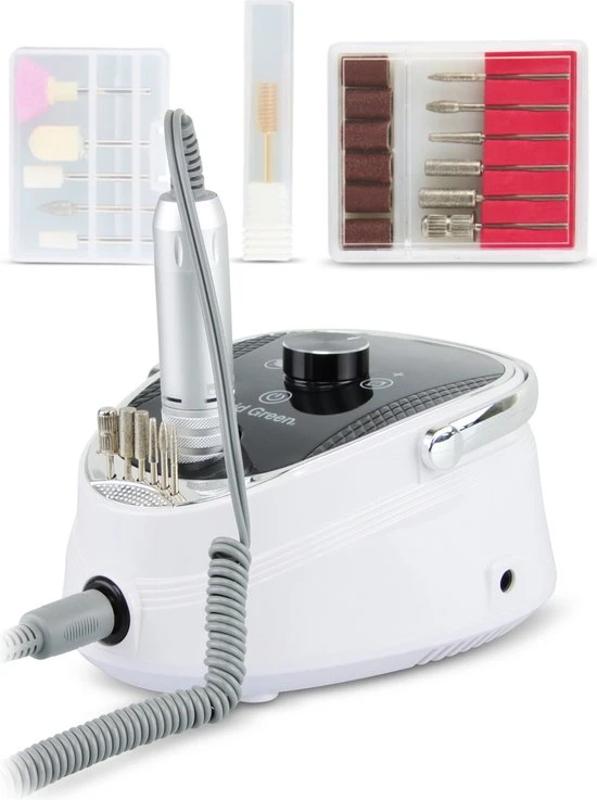 De Vivid Green nagelfrees set zorgt ervoor dat jij binnen no-time je nagels hebt gevijld. Deze set maakt ook modelleren en shapen gemakkelijk door de verschillende bijgeleverde bitjes. De elektrische nagelvijl is zo krachtig dat je er acryl of gelnagels mee kunt verwijderen. De accu zorgt ervoor dat de nagelfrees electrisch draadloos te gebruiken is. Deze set is zowel professioneel als thuis te gebruiken. Kortom, hiermee cre?er je je eigen nagelsalon aan huis!