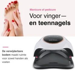 Wil jij naast je vingernagels ook je teennagels drogen? Dan is de Vivid Green nageldroger wat jij zoekt! Onze nageldroger bevat een verwijderbare bodem, hierdoor past je voet gemakkelijk onder de nagel lamp. Je kunt weer van top tot teen stralend de deur uit!